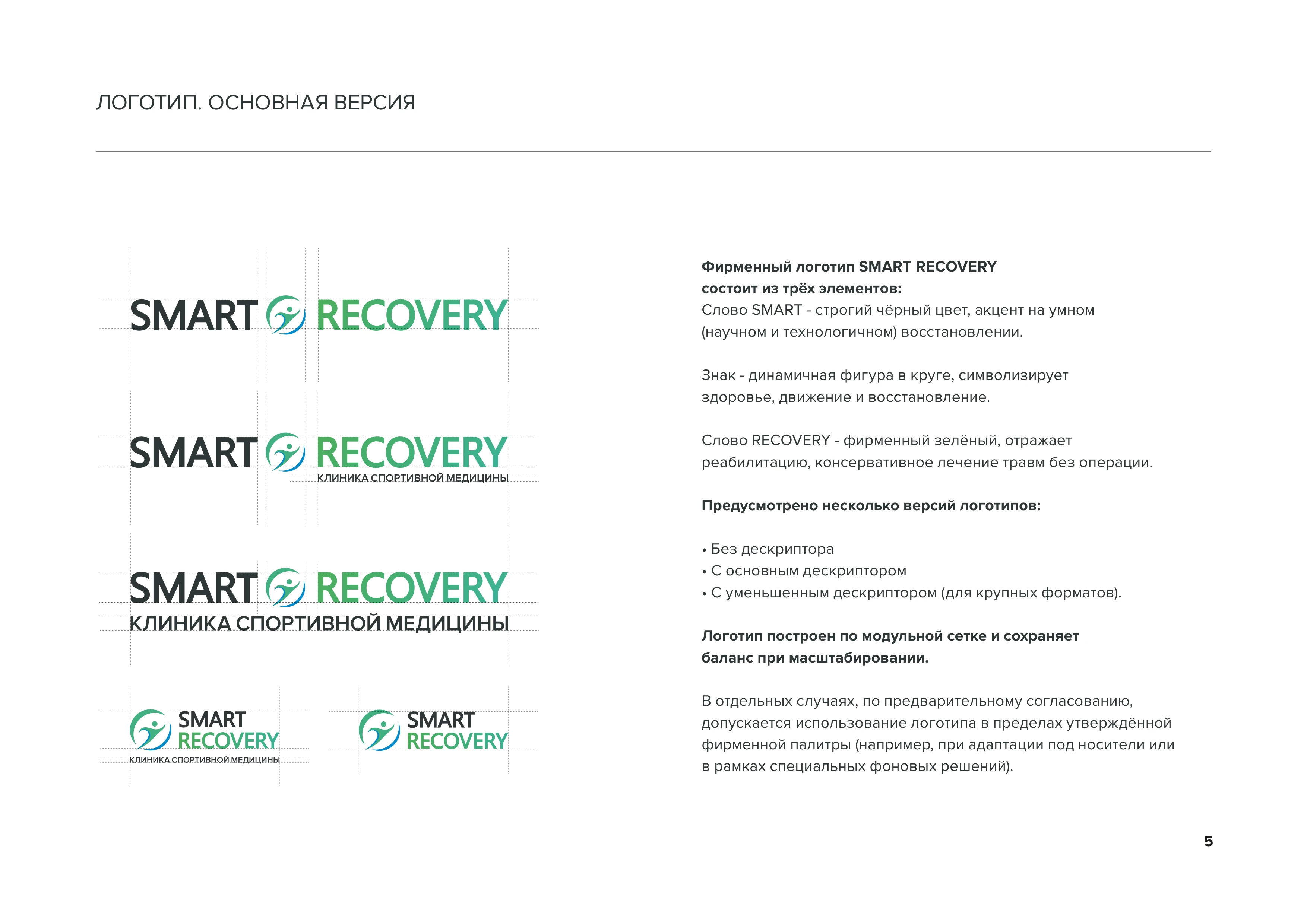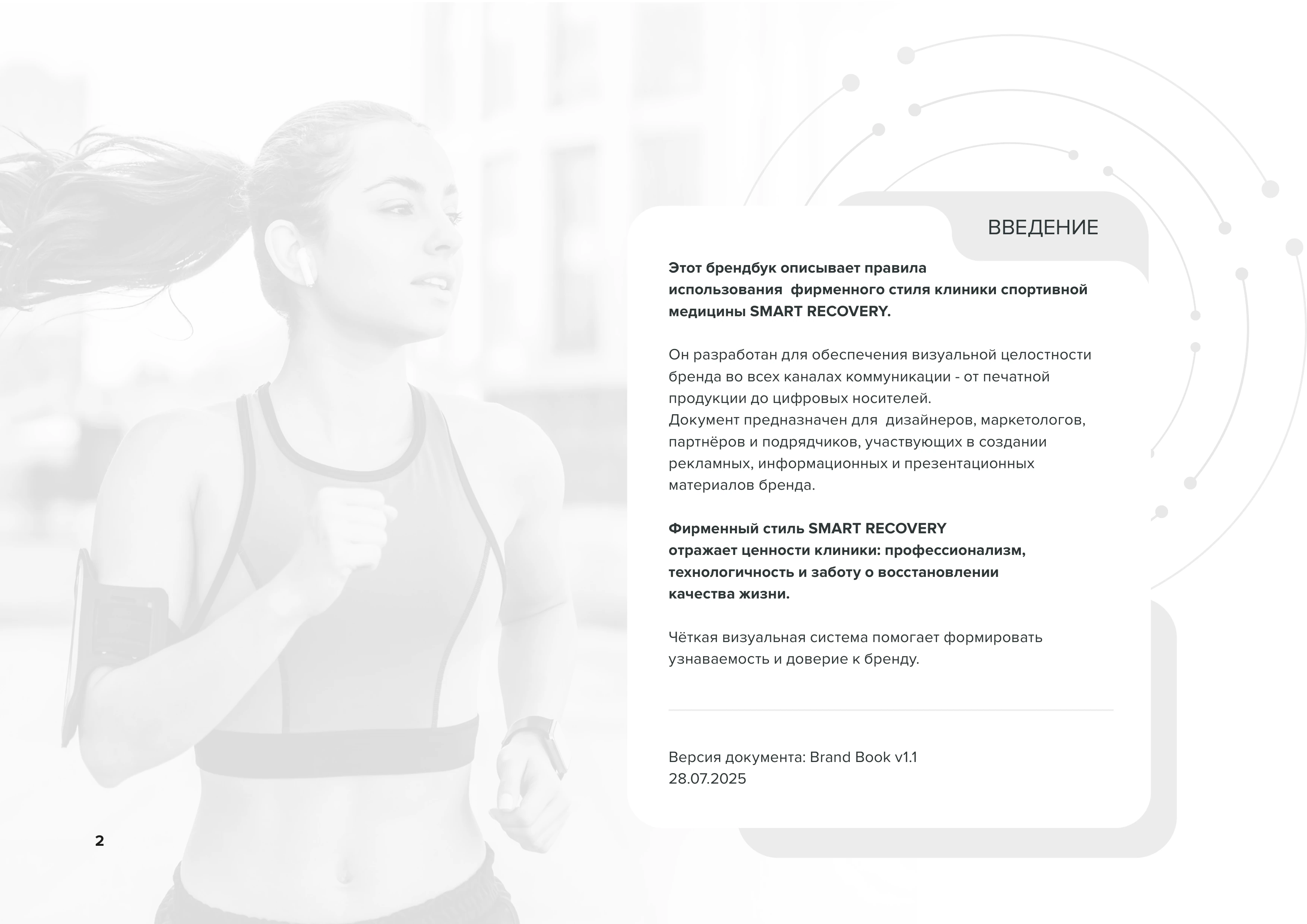 Введение Описание правил использования фирменного стиля клиники спортивной медицины SMART RECOVERY. Версия документа Brand Book v1.1 от 28.07.2025 стр. 2