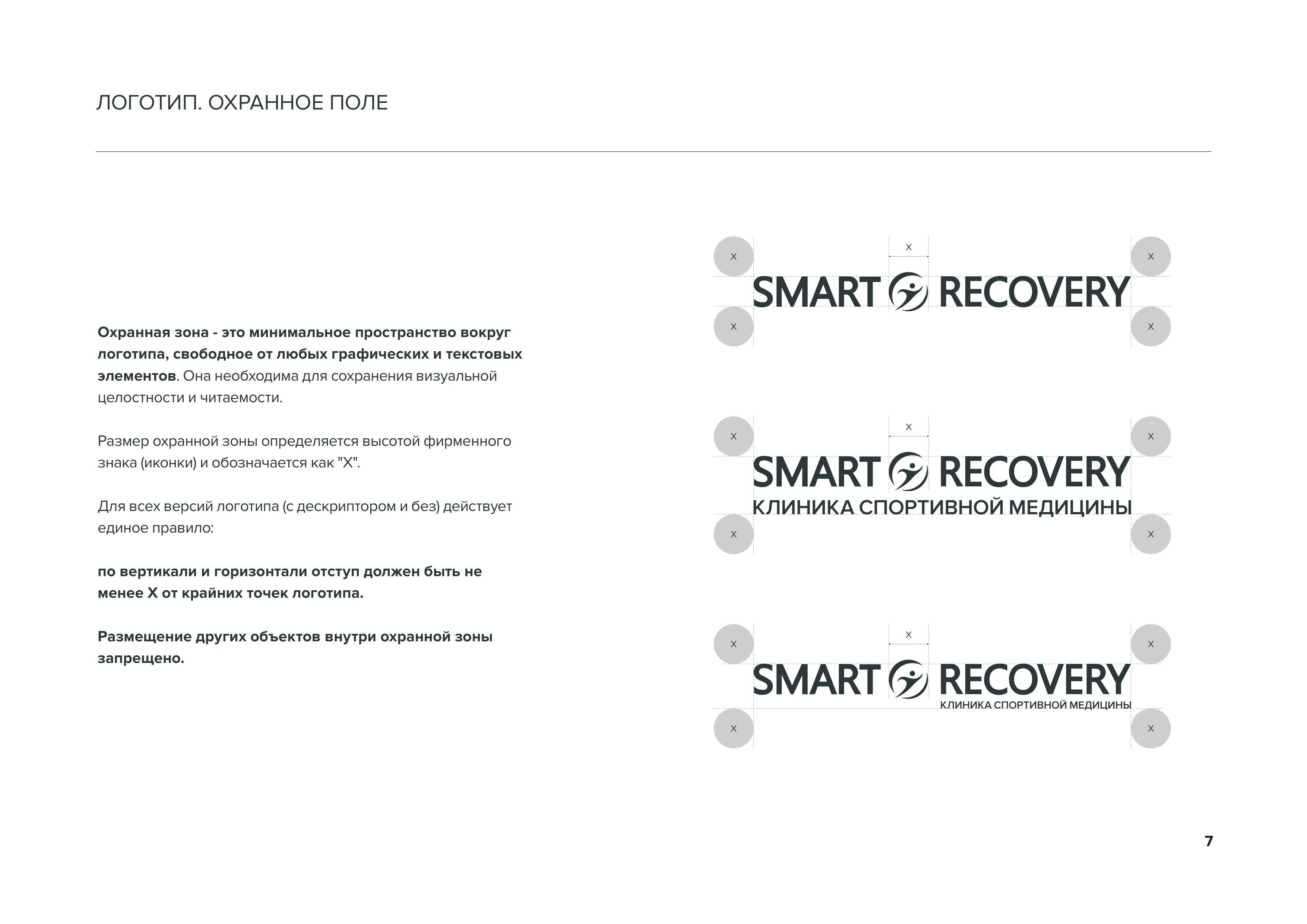 Логотип. Охранное поле Охранная зона - минимальное пространство вокруг логотипа, свободное от графических и текстовых элементов. Размещение других объектов внутри охранной зоны запрещено стр. 7