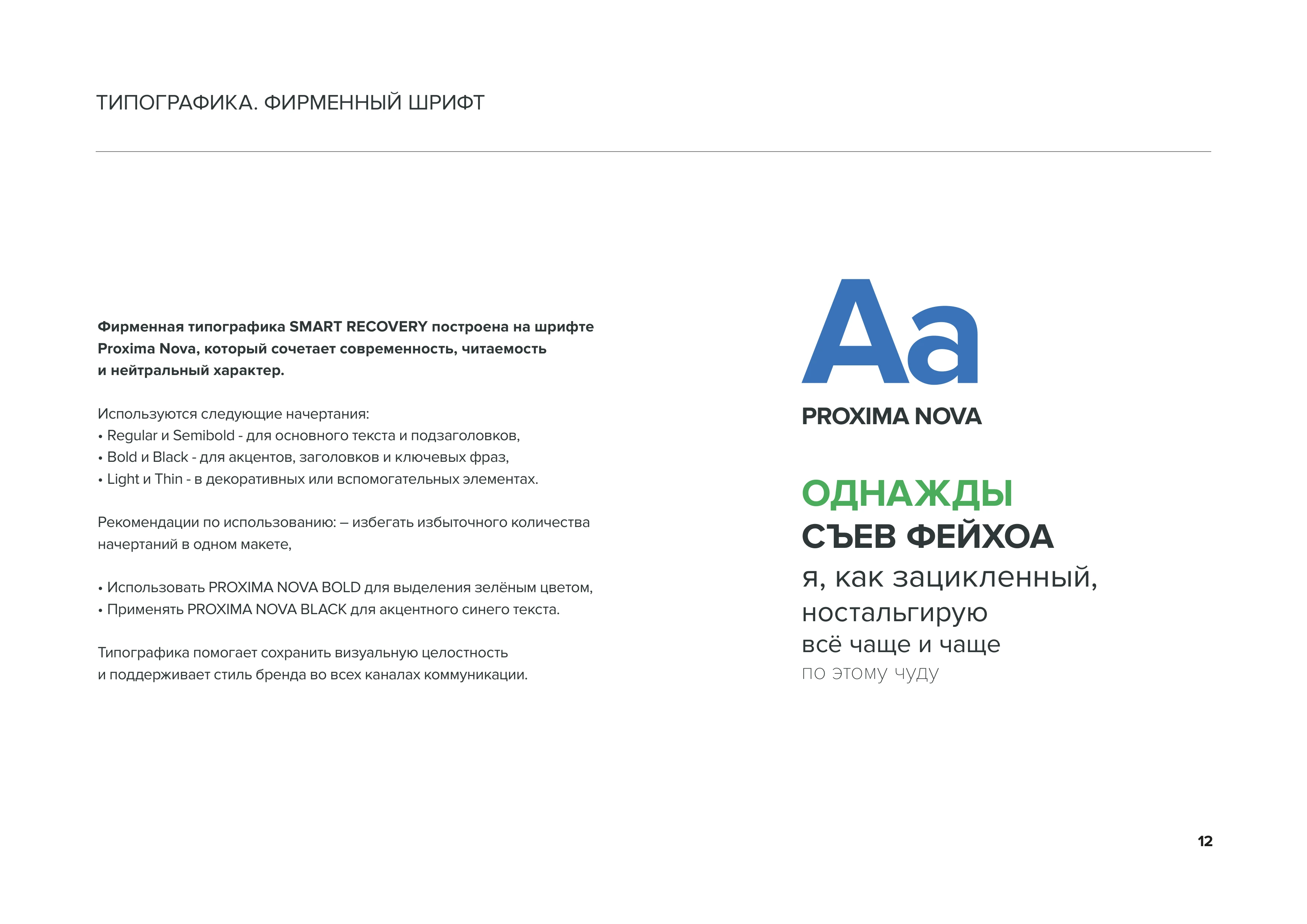 Типографика. Фирменный шрифт Фирменная типографика SMART RECOVERY построена на шрифте Proxima Nova, который сочетает современность, читаемость и нейтральный характер стр. 12