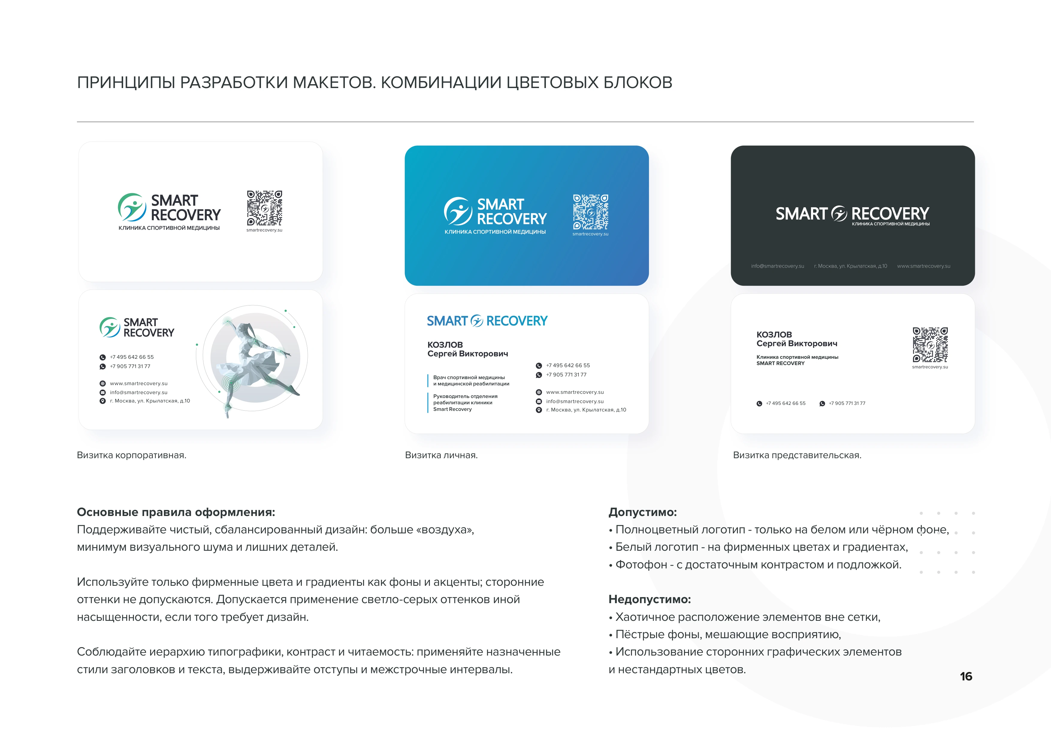 Материалы предназначены для партнёров и подрядчиков SMART RECOVERY. Просим соблюдать правила брендбука (цвета, типографика, логотипы, сетка) и не изменять основные элементы фирменного стиля. Нужен иной формат или помощь с макетом? Свяжитесь с нами.