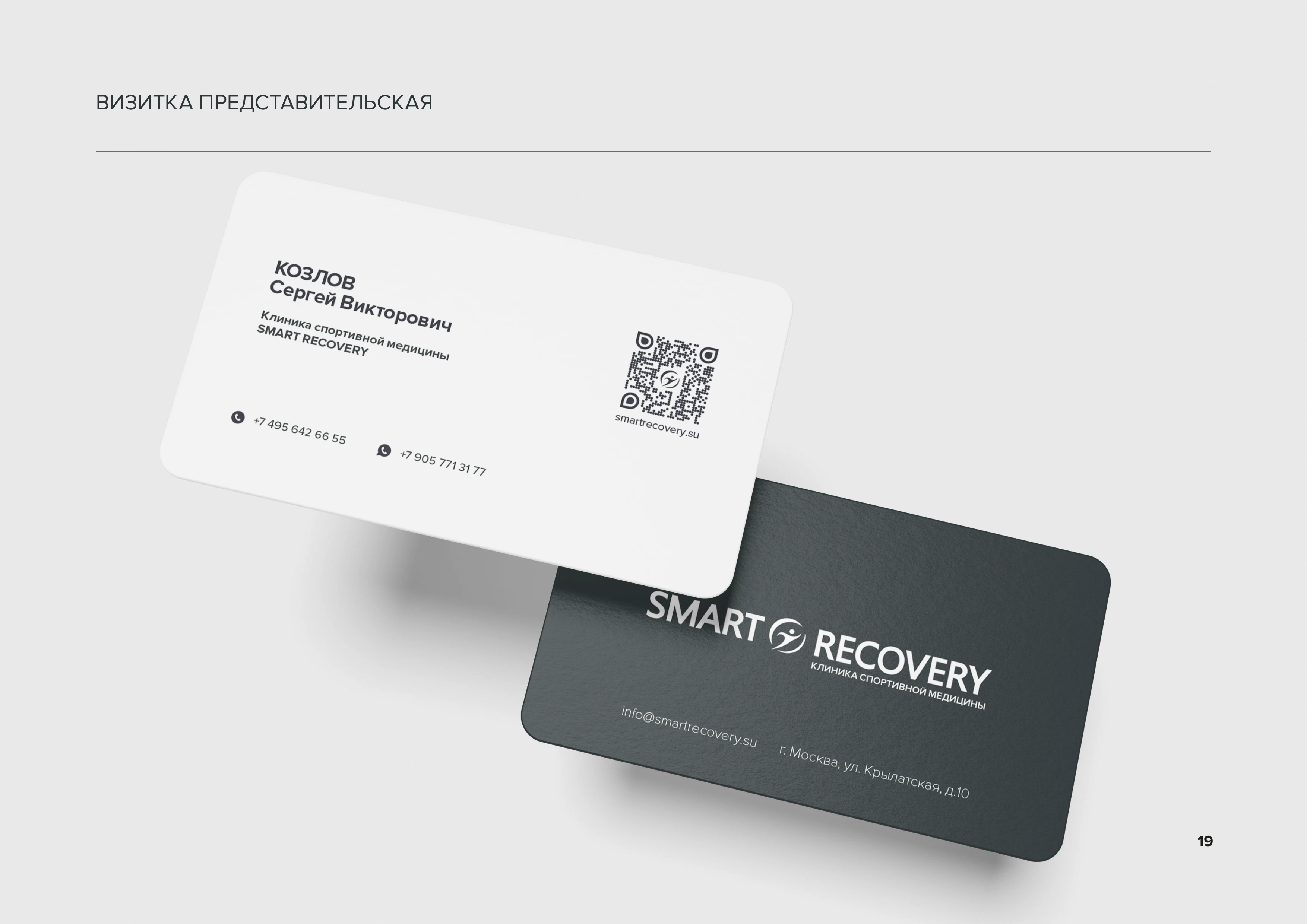 Визитка представительская Представительская визитка в строгом корпоративном стиле с минималистичным дизайном. Используется монохромная палитра для официальных мероприятий и деловых встреч стр. 19
