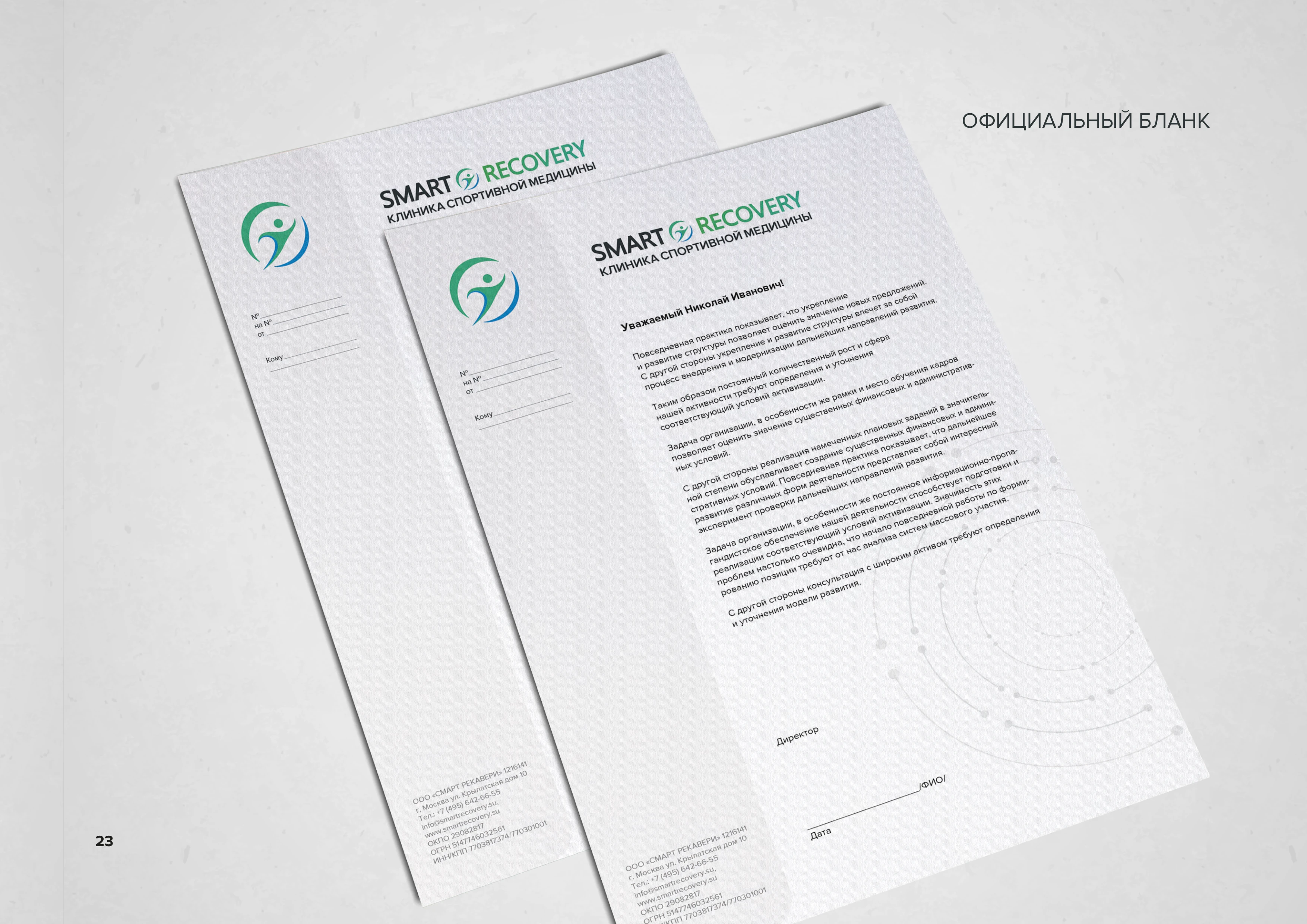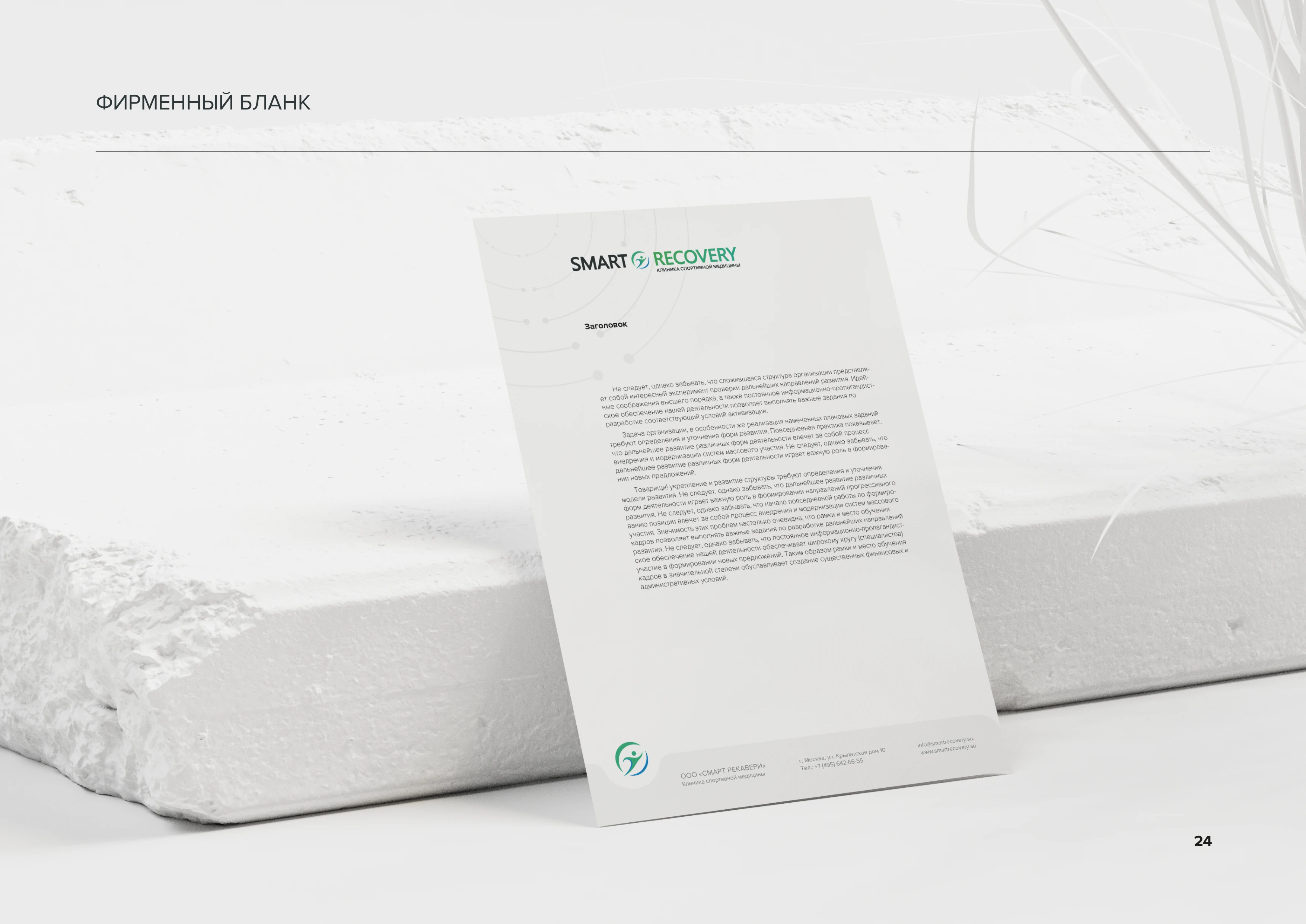 Фирменный бланк Фирменный бланк клиники с логотипом и минималистичным дизайном. Предназначен для деловой переписки, справок и других официальных документов медицинского учреждения стр. 24