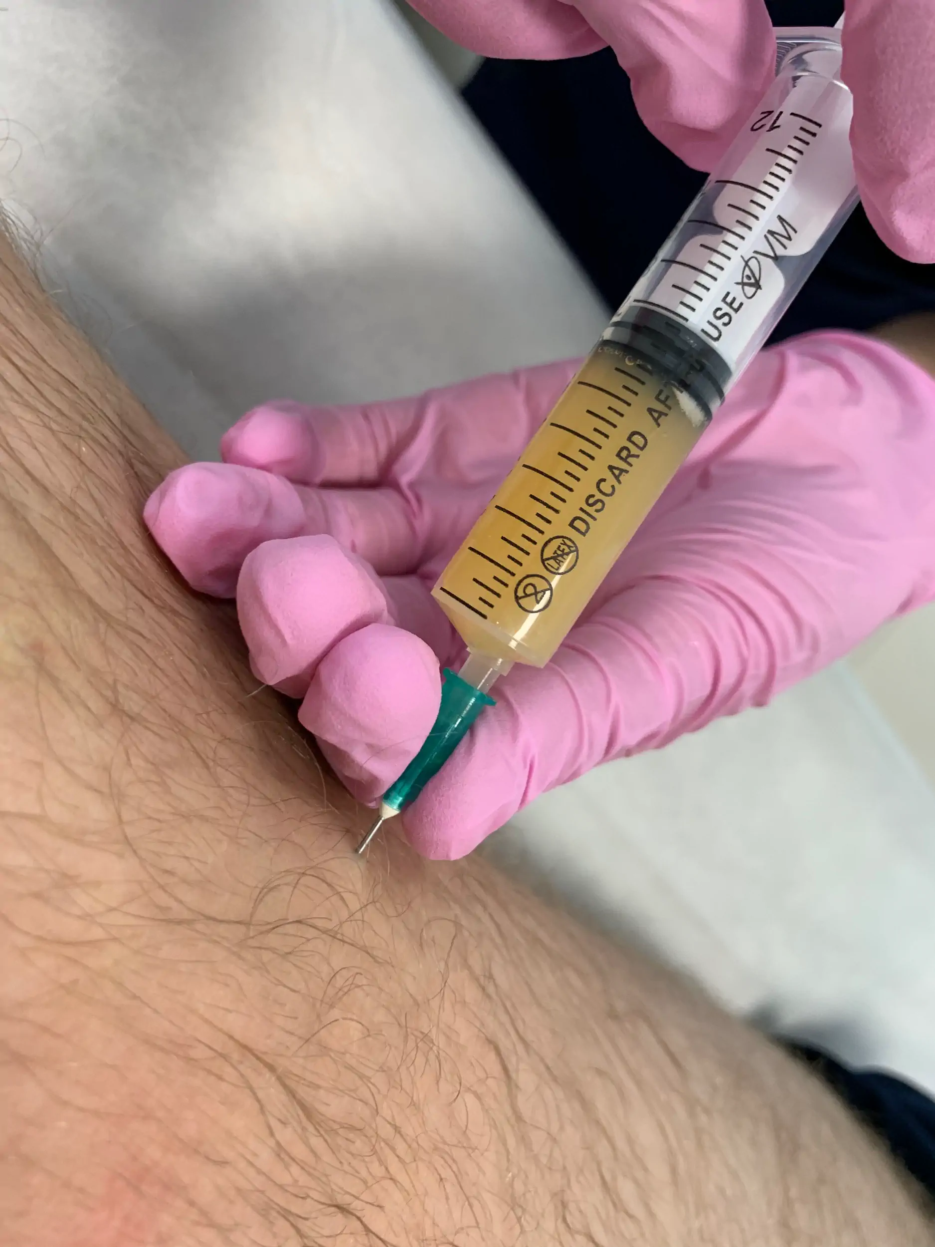 Процедура PRP терапии для суставов заключается во введении в полость сустава плазмы, полученной из крови, предварительно взятой у пациента.